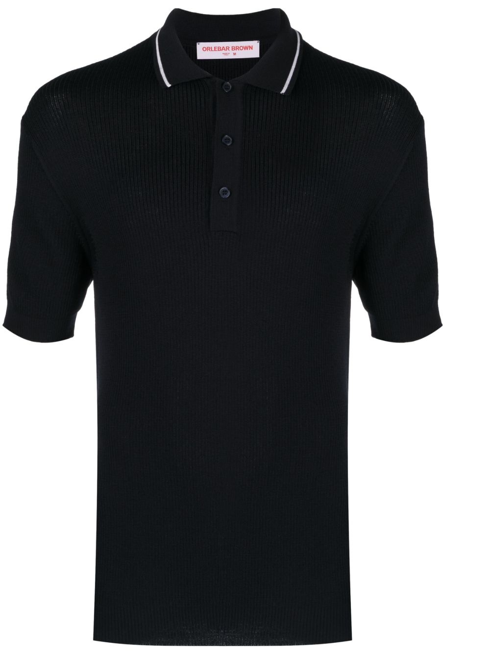 knitted polo shirt navy blue merino wool fine ribbed polo collar front button placket short sleeves ribbed hem Made in Italy Composition Merino 100% Washing instructions Dry Clean Only