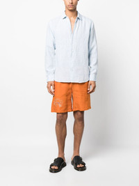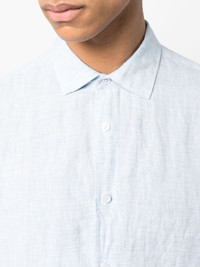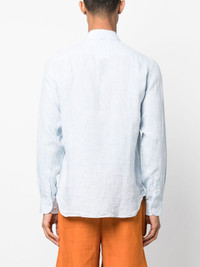 linen shirt Orlebar Brown’s shirt is made from light-blue linen chosen for its breathability and naturally crinkled finish. It’s cut for a relaxed fit, complete with a pointed collar and curved hem. Highlights - Blue - Linen - Classic collar - Long sleeves - Front button fastening Imported Composition Linen/Flax 100% SIZE & FIT Model measurements Height 6 ft 2 in(1.87 m) Bust/Chest 38.18 in(97 cm) Hips 36.61 in(93 cm) Waist 29.13 in(74 cm) Measurement SLEEVE LENGTH 25.19 in(64 cm) CHEST 36.61 in(93 cm) WAIST 35.03 in(89 cm) FittingInformation Designed for a relaxed fit, this piece allows for comfort and movement when worn Made from a lightweight non-stretch fabric This piece fits true to size – take your usual size