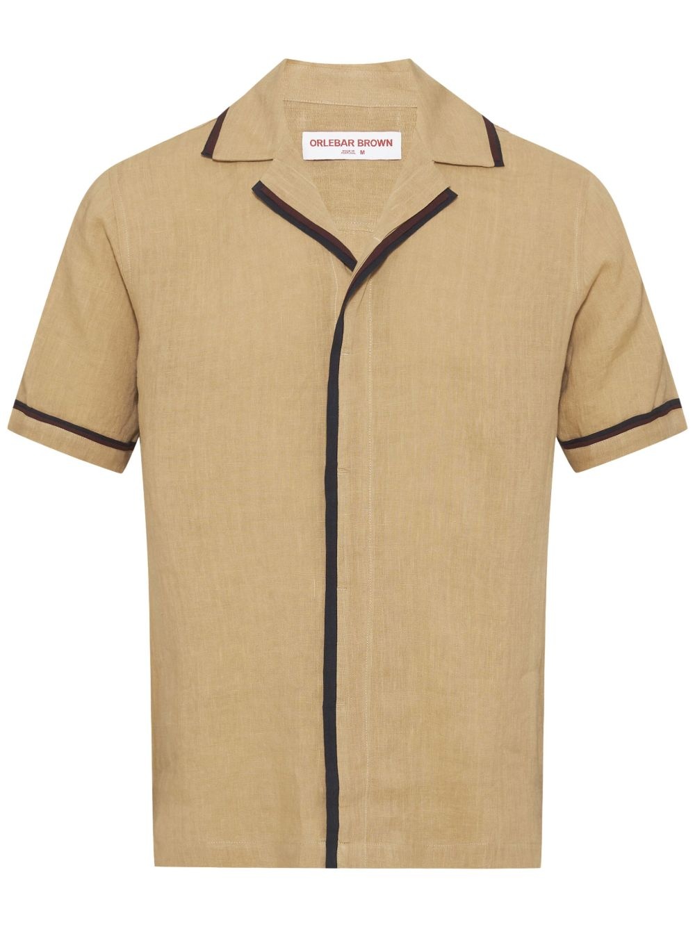 linen shirt Highlights - Beige - Front button fastening - Short sleeves - Contrasting trim - Straight hem Imported Composition Linen/Flax 100% Washing instructions Machine Wash