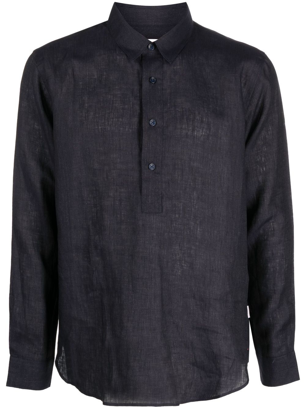 long-sleeve linen shirt Highlights - Midnight blue - Linen - Classic collar - Short front button fastening - Long sleeves - Buttoned-cuff sleeves - Curved hem Imported Composition Linen/Flax 100% SIZE & FIT Model measurements Height 6 ft 1 in(1.85 m) Bust/Chest 35.82 in(91 cm) Hips 37.79 in(96 cm) Waist 29.13 in(74 cm) FittingInformation Designed to be unstructured, offering a loose fit throughout Made from a lightweight non-stretch fabric This piece fits true to size – take your usual size