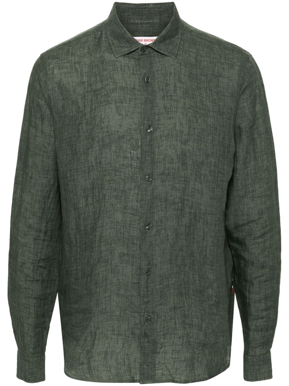 long-sleeve linen shirt Highlights - Dark green - Linen/flax - Slub texture - Classic collar - Long sleeves - Buttoned-cuff sleeves - Curved hem - Front button fastening Imported Composition Linen/Flax 100% SIZE & FIT Model measurements Height 6 ft 2 in(1.88 m) Bust/Chest 36.61 in(93 cm) Hips 35.82 in(91 cm) Waist 27.95 in(71 cm) FittingInformation Designed for a slim fit, offering a comfortable fit that sits just away from the body The dart stitching adds structure and a closer fit in the torso of this piece Made from a midweight non-stretch fabric This piece fits true to size – take your usual size