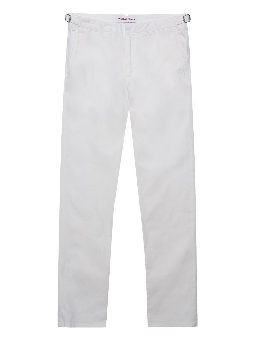 mid-rise straight-leg trousers sea mist white cotton blend stretch-cotton belt loops concealed front zip fastening two side slit pockets two rear welt pockets straight leg Imported Composition Outer: Cotton 97%, Spandex/Elastane 3% Lining: Cotton 100% SIZE & FIT FittingInformation This piece fits true to size. We recommend you get your regular size Cut for a slim fit Made with a mid-weight stretch fabric