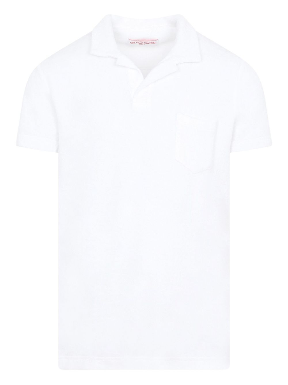 Riviera short-sleeve polo shirt Integrating a classic silhouette with a modern texture, Orlebar Brown makes summer dressing a breeze. A soft fleece touch contrasts with the typical polo shirt features: the classic collar with a buttonless placket and the relaxed silhouette will make it easy to go through the tropical heat. Imported Composition Cotton 100% SIZE & FIT FittingInformation This piece fits true to size. We recommend you get your regular size Cut for a relaxed fit Made with a mid-weight non-stretch fabric Washing instructions Machine Wash
