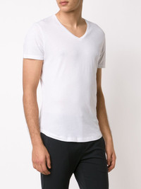 V-neck T-shirt White cotton V-neck T-shirt from Orlebar Brown. Imported Composition Cotton 100% SIZE & FIT Model measurements Height 6 ft 2 in(1.88 m) Bust/Chest 40.15 in(102 cm) Hips 38.97 in(99 cm) Waist 31.88 in(81 cm) Washing instructions Machine Wash