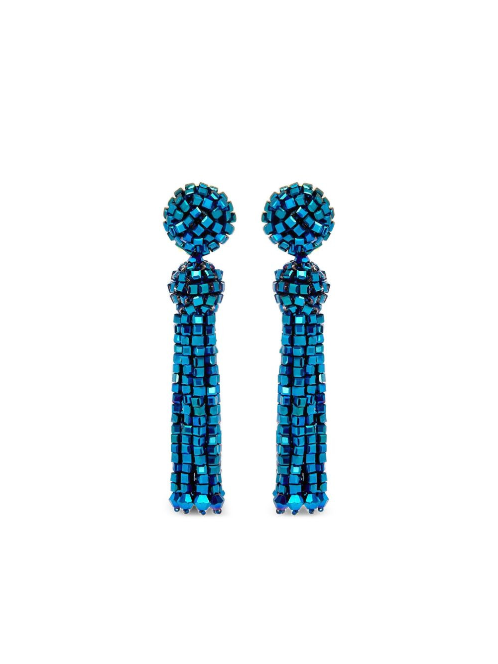 beaded tassel earrings Highlights - Blue - Cube-shaped beads - Tassel design - Spherical bead embellishment - Dangling style - These earrings come as a pair. Made in Italy SIZE & FIT Measurement HEIGHT 3.26 in(8.3 cm) Weight (single earring) 30 g(30 g) WIDTH 0.7 in(1.8 cm)