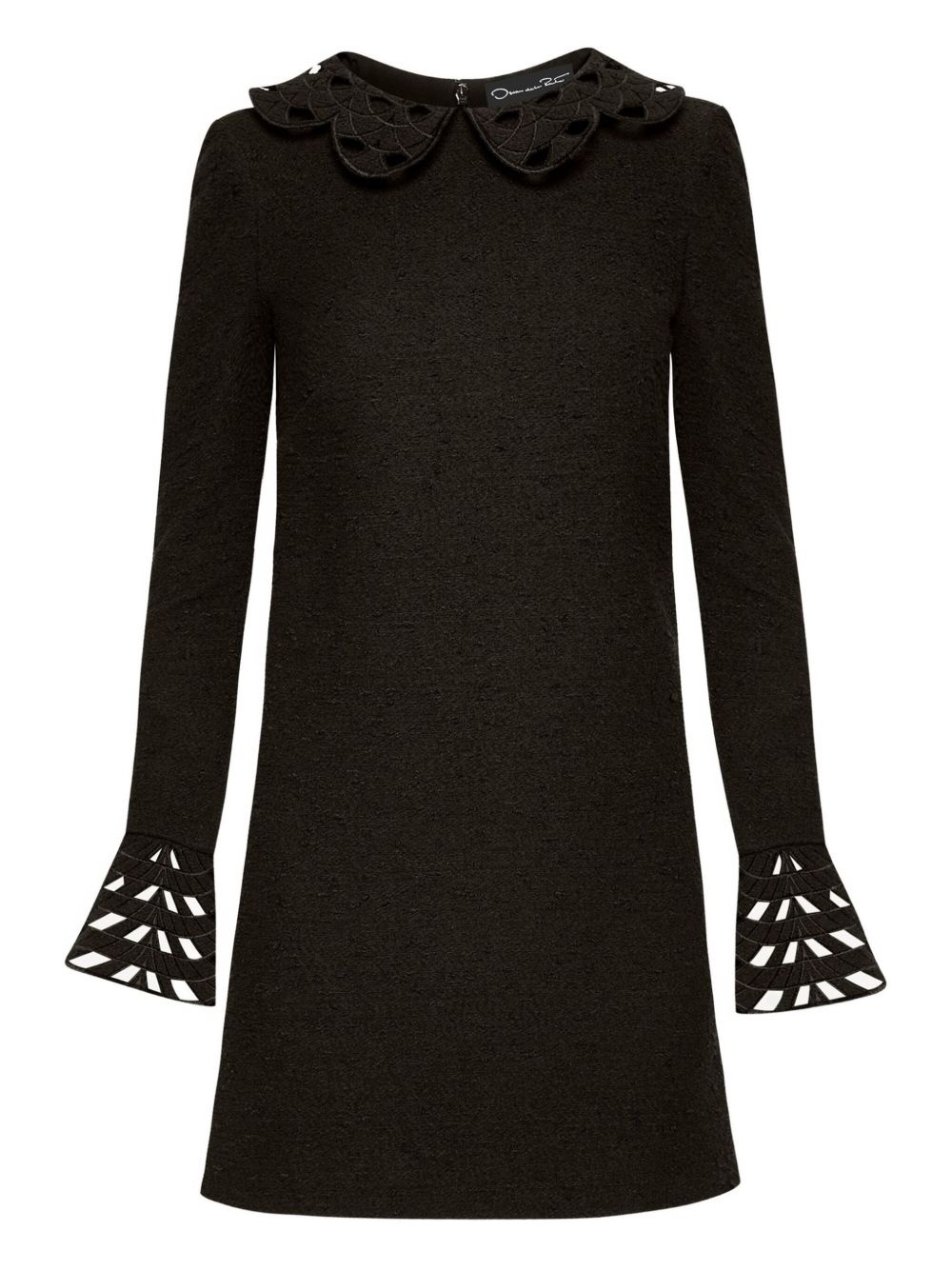 bell-sleeve embellished dress Highlights - Black - Round collar - Scalloped detailing - Flared bell sleeves - Cut-out design - Above-the-knee length - Model is 5'10.5" / 180 cm and wearing size 2 Made in Italy Composition Cotton 64%, Virgin Wool 27%, Polyamide 9% Washing instructions Read Manufacturer Guidelines