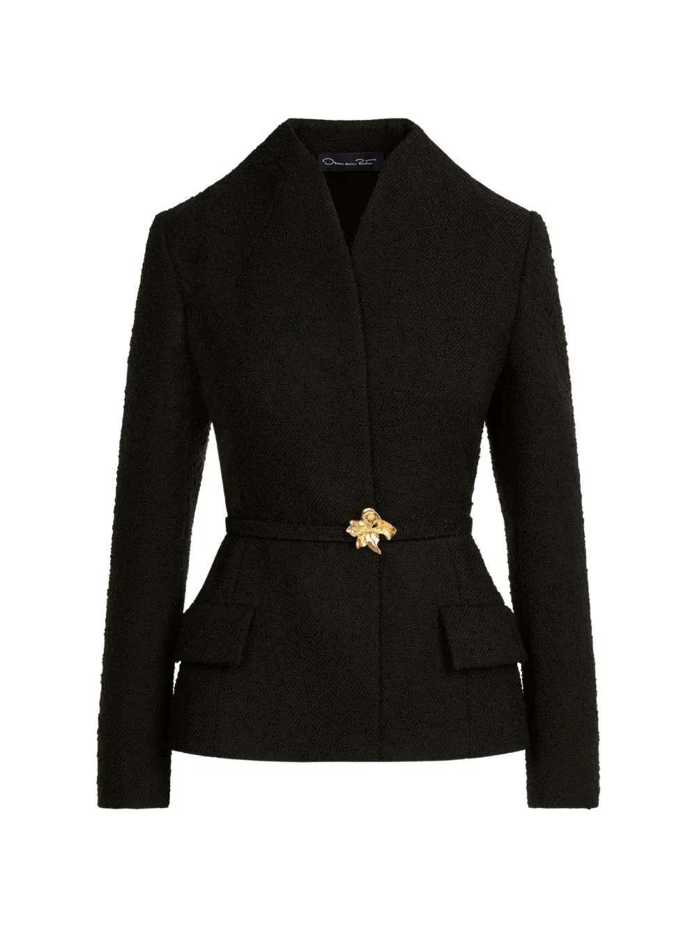 belt tweed jacket Highlights - Black - Tweed texture - Notched lapels - Belt - Flap pockets - Collarless Made in Italy Composition Outer: Polyester 56%, Wool 44% Lining: Silk 100% Washing instructions Read Manufacturer Guidelines