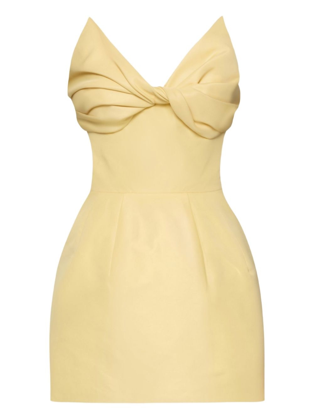 bow-detailed faille cocktail dress Highlights - Butter yellow - Rear zip fastening - Off-shoulder - Strapless - Thigh-length - Model is 5'10.5" / 180 cm and wearing size 2 Made in United States Composition Lining: Polyester 100% Outer: Cotton 100% Washing instructions Read Manufacturer Guidelines