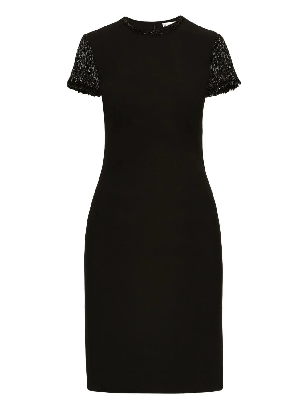 bugle bead-embellished dress Highlights - Black - Virgin wool blend - Bugle bead embellishment - Short sleeves - Round neck Made in Italy Composition Virgin Wool 94%, Elastane 5%, Polyamide 1% Lining: Silk 100% Washing instructions Read Manufacturer Guidelines