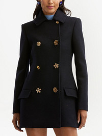 FLORAL BUTTON DOUBLE-BREASTED CAR COAT