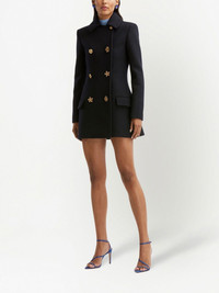 button-detail blazer dress Highlights - Navy blue - Virgin wool - Silk lining - Gold-tone hardware - Tailored cut - Decorative button detailing - Pointed flat collar - Double-breasted button fastening - Long sleeves - Slim cut - Straight hem - Thigh-length Made in Italy Composition Body: Virgin Wool 100% Lining: Silk 100% Washing instructions Read Manufacturer Guidelines