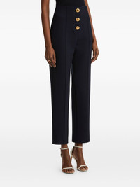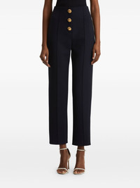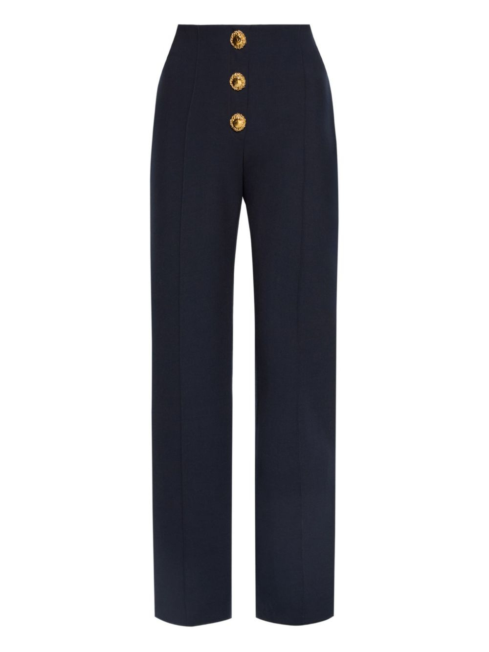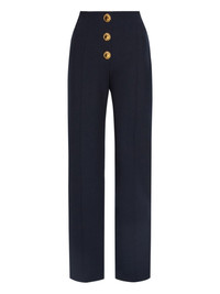 button-detailed trousers Highlights - Navy blue - Wool blend - Central button fastening - Gold buttons - High waist - Model is 5'10.5" / 180 cm and wearing size 2 Made in United States Composition Virgin Wool 94%, Elastane 5%, Polyamide 1% Washing instructions Read Manufacturer Guidelines