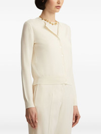 button-front cardigan Highlights - Ivory - Wool blend - Button front fastening - Round neck - Long sleeves - Ribbed trims Made in Italy Composition Wool 60%, Silk 30%, Cashmere 10% Washing instructions Dry Clean Only
