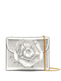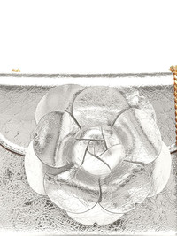 Crinkle Metallic Mini TRO bag Part of the AW23 collection, this Tro bag iteration by Oscar de la Renta reflects the brand's love for blooming designs. Made from leather it boasts a silver-tone crinkled metallic finish. Highlights - Silver-tone - Leather - Metallic finish - Crinkled finish - Floral detail - Push-lock fastening - Chain-link shoulder strap - Internal slip pocket Made in Italy Composition Outer: Leather 100%