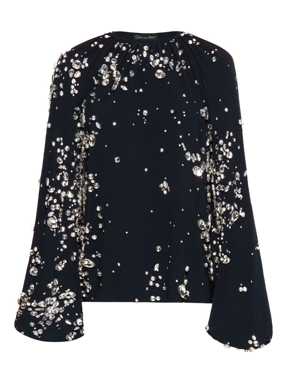 crystal-embellished balloon-sleeve blouse Highlights - Navy blue - Crystal embellishment - Balloon sleeves - Round neck - Model is 5'10.5" / 180 cm and wearing size 2 Imported Composition Silk 94%, Elastane 6% Washing instructions Read Manufacturer Guidelines