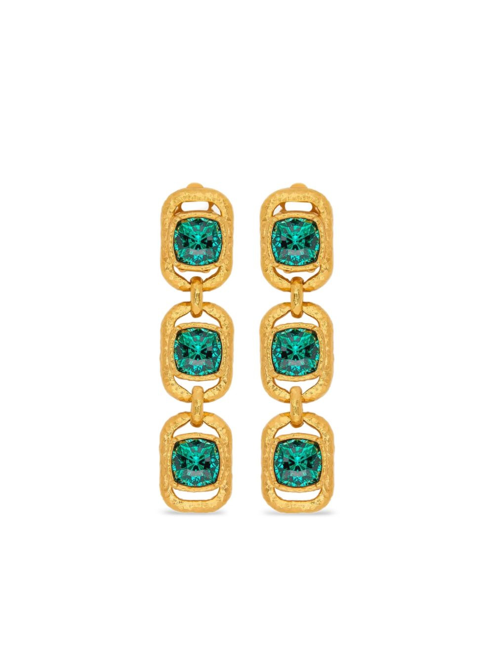 crystal-embellished chain earrings Highlights - Gold-tone - Emerald green crystals - Square-cut embellishments - Textured chain frames - Linked chains design - These earrings come as a pair. Made in Italy SIZE & FIT Measurement DIAMETER 2.55 in(6.5 cm) Weight (single earring) 4.8 g(4.8 g)