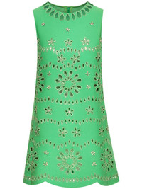 crystal-embellished shift minidress Highlights - Bright green - Virgin wool blend - Crystal embellishment - Eyelet embellishment - Shift style - Round neck - Concealed rear zip fastening - Sleeveless - Scallop hem - Above-knee length - Model is 5'10.5" / 180 cm and wearing size 2 Imported Composition Lining: Silk 100% Outer: Virgin Wool 94%, Elastane 5%, Polyamide 1% Washing instructions Dry Clean Only