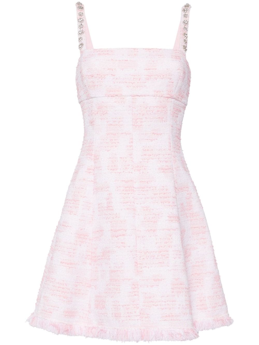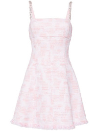 crystal-embellished tweed minidress Highlights - Pink - Silk - Tweed - Crystal embellishment - Wide shoulder straps - Square neck - Concealed rear zip fastening - Straight hem Made in Italy Composition Outer: Polyester 49%, Polyamide 28%, Cotton 20%, Fabric 4% Lining: Silk 100% SIZE & FIT Model measurements Height 5 ft 10 in(1.77 m) Bust/Chest 30.7 in(78 cm) Hips 35.03 in(89 cm) Waist 23.62 in(60 cm) Measurement HIPS 39.37 in(100 cm) LENGTH 35.03 in(89 cm) WAIST 25.98 in(66 cm) FittingInformation Designed for a close fit at the chest and waist with a loose fit at the hip The dart stitching adds structure and a closer fit in the torso of this piece Made from a midweight non-stretch fabric This piece fits true to size – take your usual size
