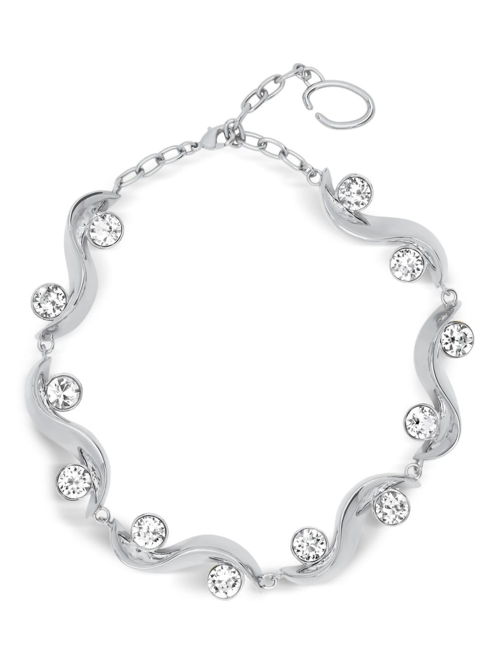 crystal-embellished wave necklace Highlights - Silver-tone - Wave design - Crystal embellishments - Chain link - Lobster claw fastening - Polished finish Made in Italy SIZE & FIT Measurement TOTAL LENGTH 11.81 in(30 cm)