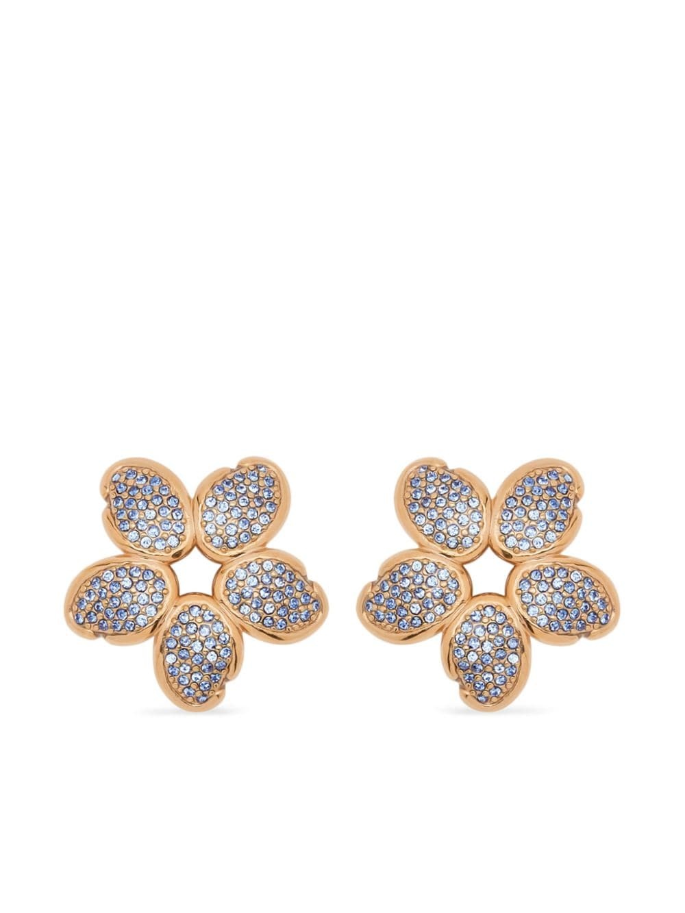 Crystal O Flower earrings Highlights - Gold-tone - Brass - Floral motif - Crystal embellishment - Post-back fastening - For pierced ears - These earrings come as a pair. Made in Italy SIZE & FIT Measurement HEIGHT 0.98 in(2.5 cm) Weight (single earring) 16 g(16 g) WIDTH 0.98 in(2.5 cm)