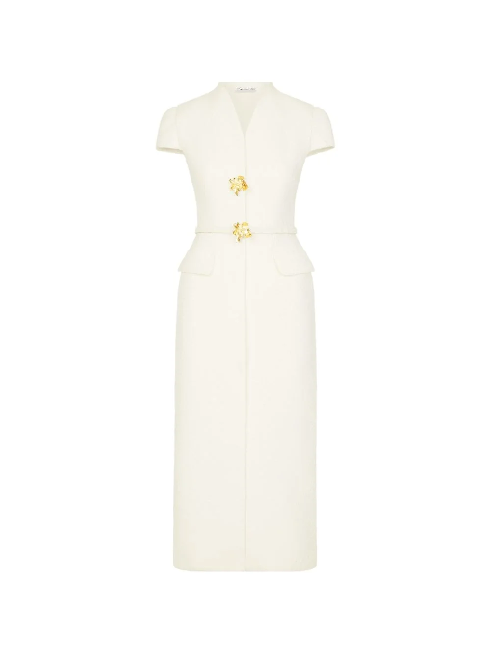 cyclamen-detail midi dress Highlights - Ivory - Tweed texture - Cyclamen detail - Cap sleeves Made in Italy Composition Outer: Polyester 56%, Wool 44% Lining: Silk 100% Washing instructions Read Manufacturer Guidelines