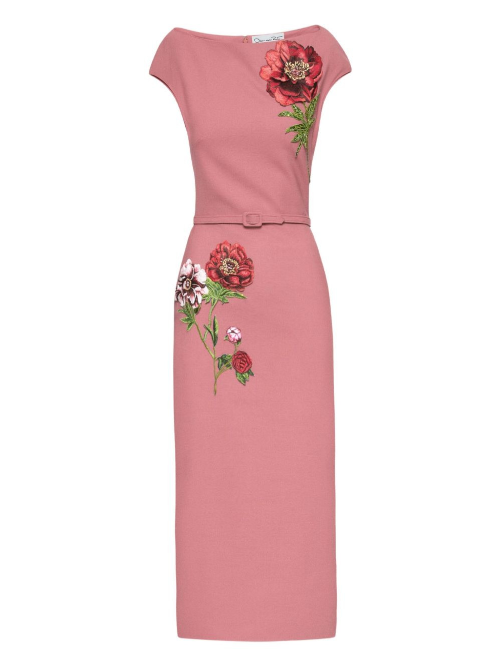 embroidered belted midi dress Highlights - Dusty rose - Floral embroidery - Short sleeves - Boat neck - Belted waist - Model is 5'10.5" / 180 cm and wearing size 2 Made in Italy Composition Virgin Wool 94%, Elastane 5%, Polyamide 1% Washing instructions Read Manufacturer Guidelines