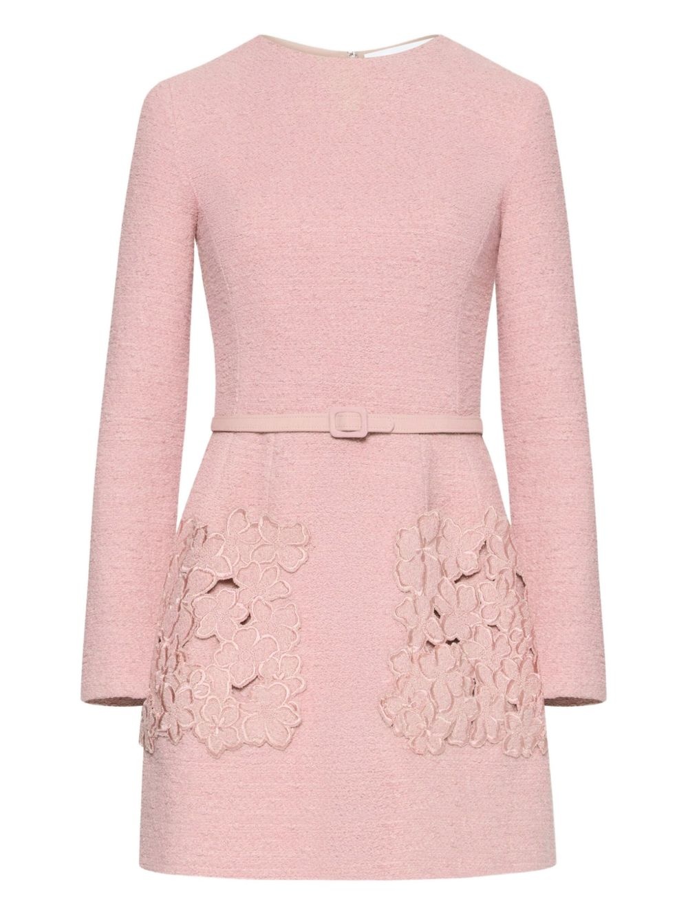 embroidered-detail dress Highlights - Pale pink - Long sleeves - Belted waist - Floral embroidery - Soft texture - Round neckline - Model is 5'10.5" / 180 cm and wearing size 2 Made in Italy Composition pure cotton 64%, Virgin Wool 27%, Polyamide 9% Lining: Silk 100% Washing instructions Read Manufacturer Guidelines