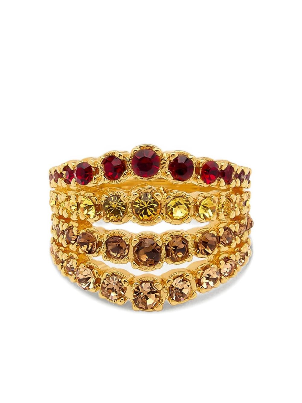 Fan crystal-embellished ring Highlights - Gold - Crystal embellishment - Four rows - Curved band - Wide band Made in Italy
