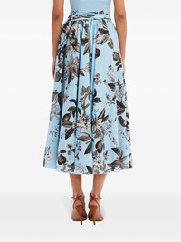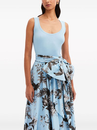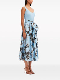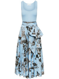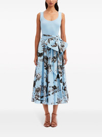 Flora & Fauna-print sleeveless midi dress Highlights - Light blue/black/white - Stretch-cotton/silk blend - Fine ribbed - Poplin texture - Floral print at the skirt - Bow detailing - Scoop neck - Sleeveless - Tied waist - Flared skirt - Flared hem - Mid-calf length - Model is 5'10.5" / 180 cm and wearing size 2 Made in Italy Composition Cotton 97%, Silk 83%, Polyamide 15%, Elastane 3%, Spandex/Elastane 2% Washing instructions Dry Clean Only