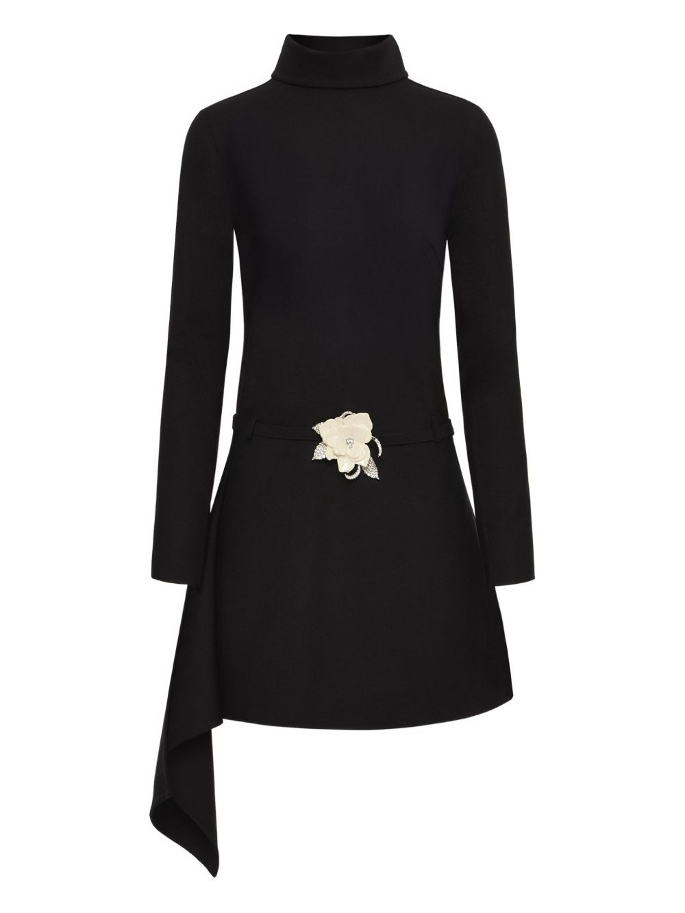 floral belt mock-neck dress Highlights - Black - Floral detail - Mock neck - Belt - Long sleeves - Side drape Made in Italy Composition Virgin Wool 94%, Elastane 5%, Polyamide 1% Washing instructions Read Manufacturer Guidelines