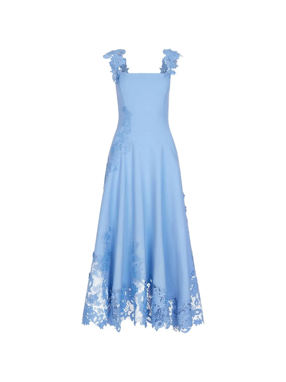 flower-embroidery midi dress Highlights - Blue - Flower detail - Square neck - Sleeveless - A-line skirt Made in Italy Composition Viscose 94%, Elastane 5%, Polyamide 1% Trims: Polyester 100% Washing instructions Dry Clean Only