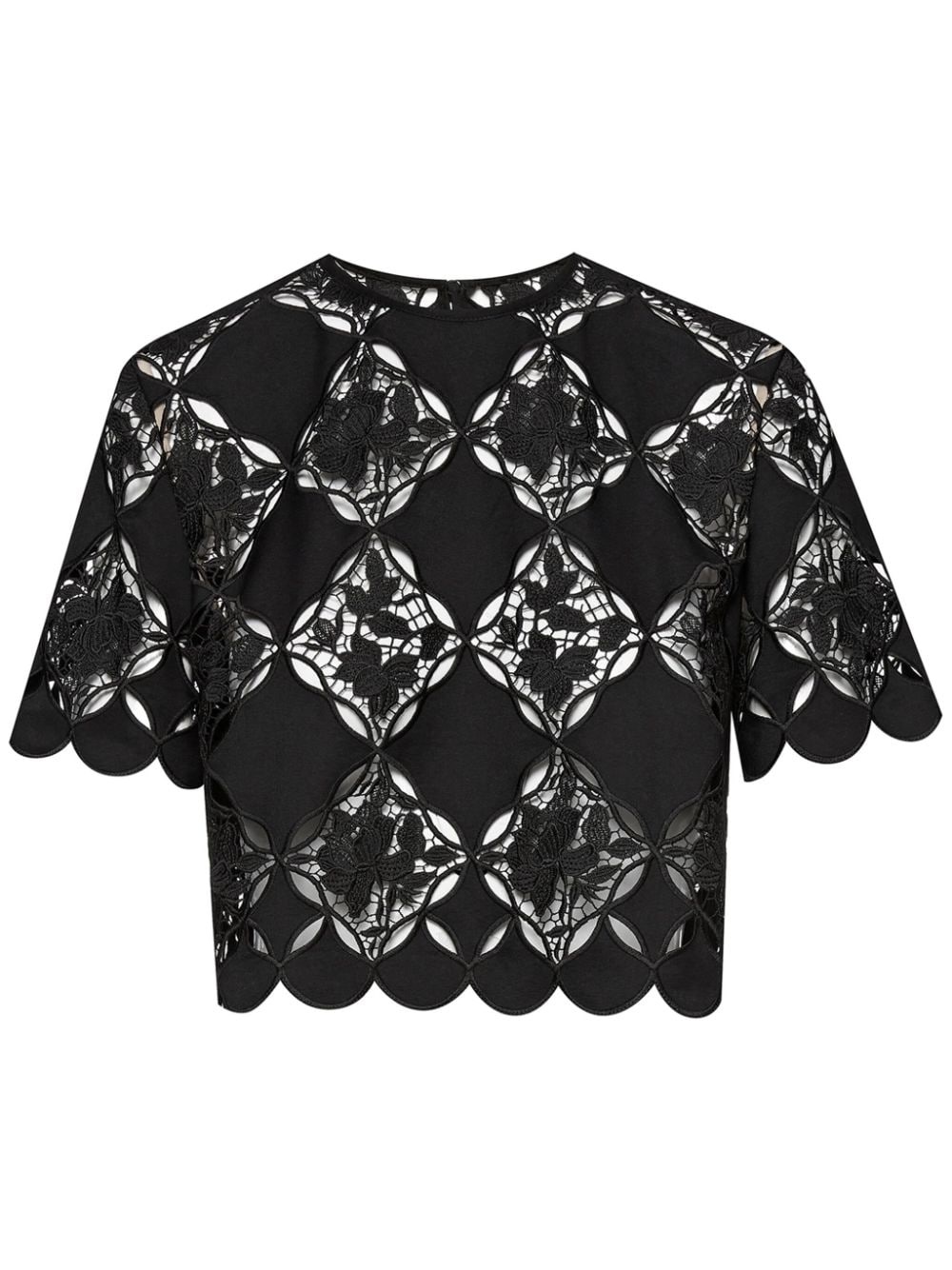 Gardenia guipure blouse Highlights - Black - Silk - Guipure lace - Cut-out floral detailing - Round neck - Keyhole detail to the rear - Rear button fastening - Short sleeves - Scallop hem - Model is 5'10.5" / 180 cm and wearing size 2 Made in Italy Composition Silk 100%, Polyester 80%, Cotton 20% Washing instructions Dry Clean Only