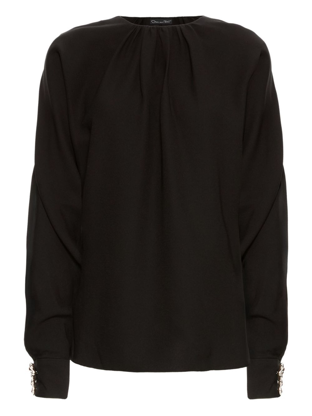 gathered-cuff blouse Highlights - Black - Gathered neckline - Long sleeves - Buttoned cuffs - Georgette - Model is 5'10.5" / 180 cm and wearing size 2 Made in Italy Composition Silk 94%, Elastane 6% Washing instructions Read Manufacturer Guidelines