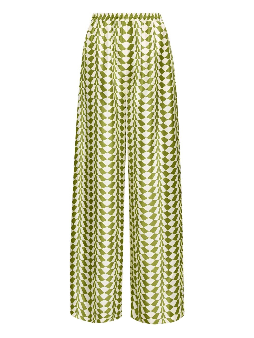 Geo silk trousers Highlights - Fern green - Elasticated waistband - Two side slit pockets - High-waisted - Model is 5'10.5" / 180 cm and wearing size 2 Made in Italy Composition Silk 100%
