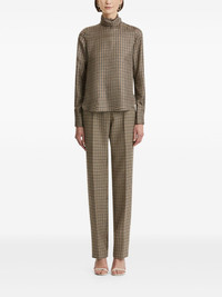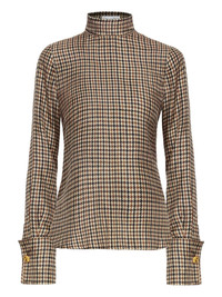 houndstooth high-neck blouse Highlights - Brown - Houndstooth pattern - High neck - Long sleeves - Buttoned cuffs - Model is 5'10.5" / 180 cm and wearing size 2 Made in Italy Composition Silk 100% Washing instructions Read Manufacturer Guidelines