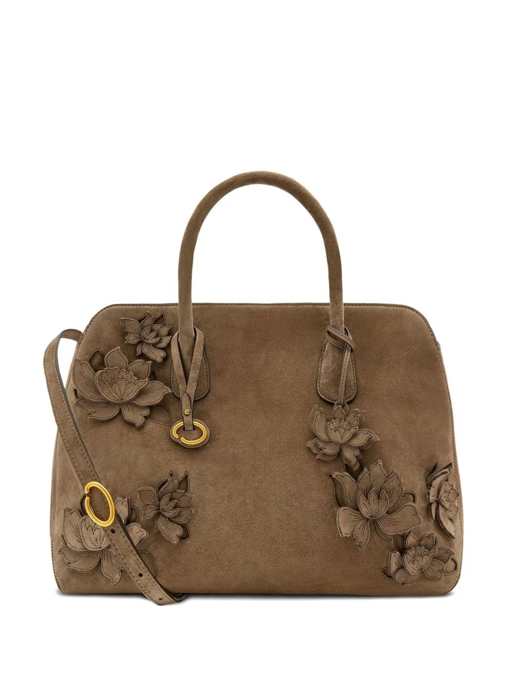 Ivy tote bag Highlights - Taupe brown - Suede - Floral appliques - Top handles - Gold-tone hardware - Detachable shoulder strap Made in Italy Composition Outer: Calf Suede 100% Lining: Microfibre 100% SIZE & FIT Measurement DEPTH 5.51 in(14 cm) HANDLE 4.33 in(11 cm) HEIGHT 5.51 in(14 cm) WIDTH 13.77 in(35 cm)