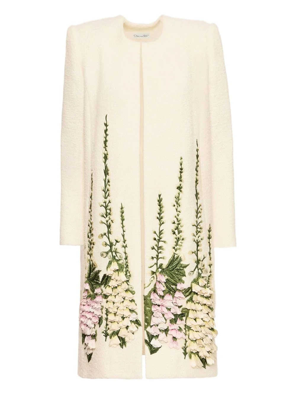 long-sleeve coat Highlights - Beige - Floral embroidery - Round neck - Open front - Long sleeves Made in Italy Composition Outer: Cotton 64%, Virgin Wool 27%, Polyamide 9% Lining: Silk 100%, Fabric 100% Washing instructions Read Manufacturer Guidelines