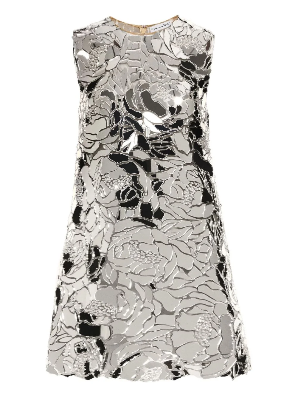 mirrored floral shift mini dress Highlights - Silver - Floral mosaic pattern - Sleeveless - Round neck - Model is 5'10.5" / 180 cm and wearing size 2 Made in United States Composition Lining: Silk 100% Outer: Polyamide 100% Washing instructions Read Manufacturer Guidelines