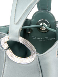 nano Crystal Pave O Handle bag Highlights - Blue-grey - Satin finish - Single top handle - Drawstring fastening - Chain-link shoulder strap - Main compartment - Metal eyelet detailing - Signature o logo - Crystal embellishment Made in Italy Composition Outer: Satin 90%, Leather 10% SIZE & FIT Measurement DEPTH 3.54 in(9 cm) HANDLE 2.36 in(6 cm) HEIGHT 4.72 in(12 cm) STRAP 47.24 in(120 cm) WIDTH 6.29 in(16 cm)