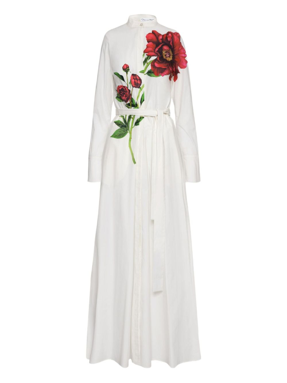peony-print belted maxi dress Highlights - Off-white - Peony print - Belted waist - Long sleeves - Button front fastening - Model is 5'10.5" / 180 cm and wearing size xs Made in Italy Composition Cotton 97%, Elastane 3% Washing instructions Read Manufacturer Guidelines