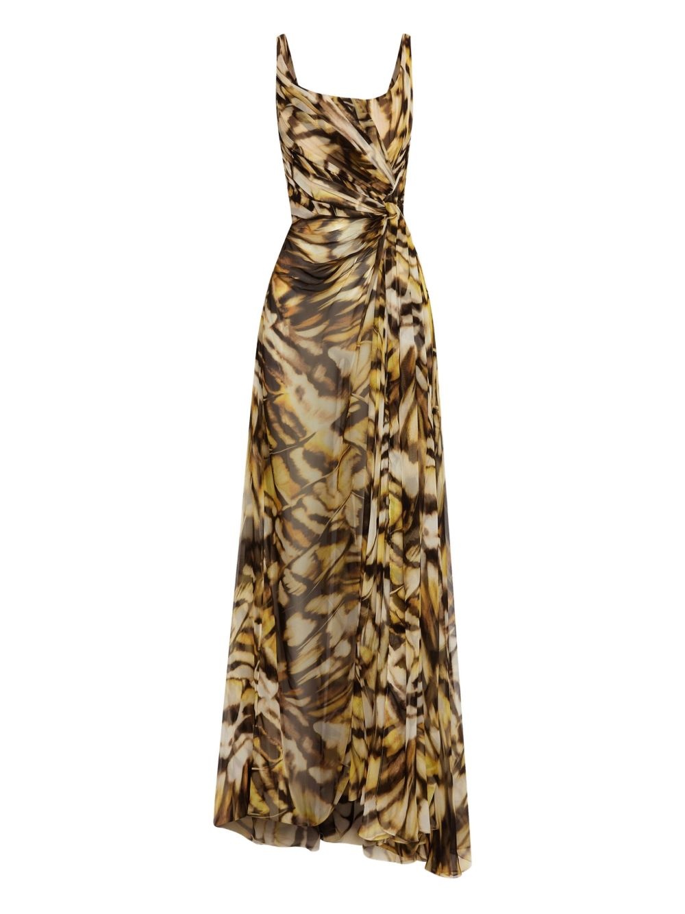 ABSTRACT BUTTERFLY SILK CHIFFON GOWN