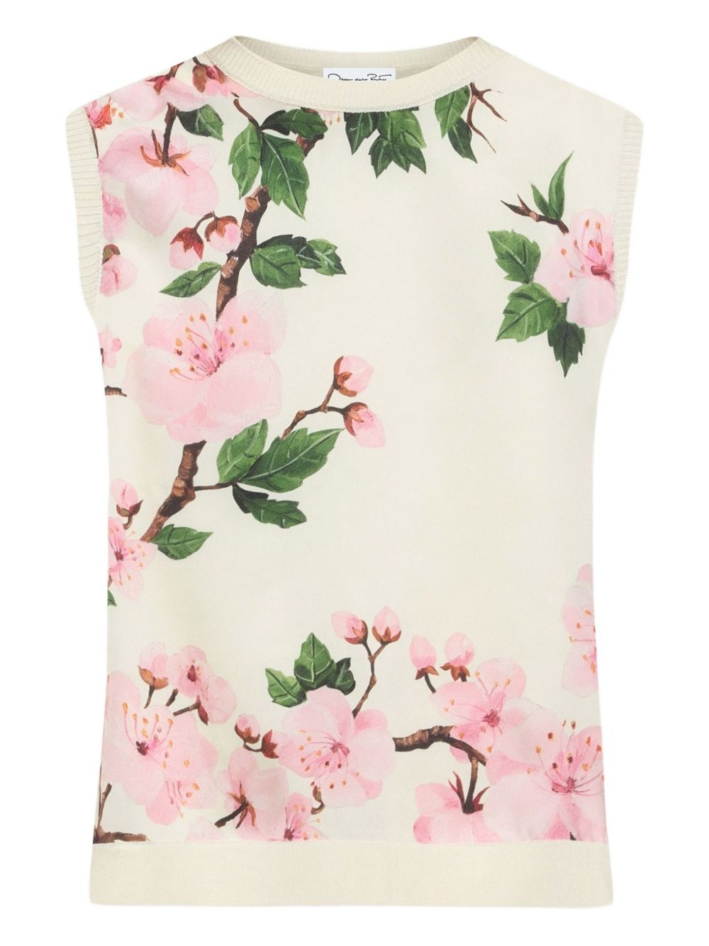printed silk tank top Highlights - White - Ribbed trim - Crew neck - Sleeveless - Model is 5'10.5" / 180 cm and wearing size xs Made in Italy Composition Polyester 100%, Silk 55%, Viscose 45%