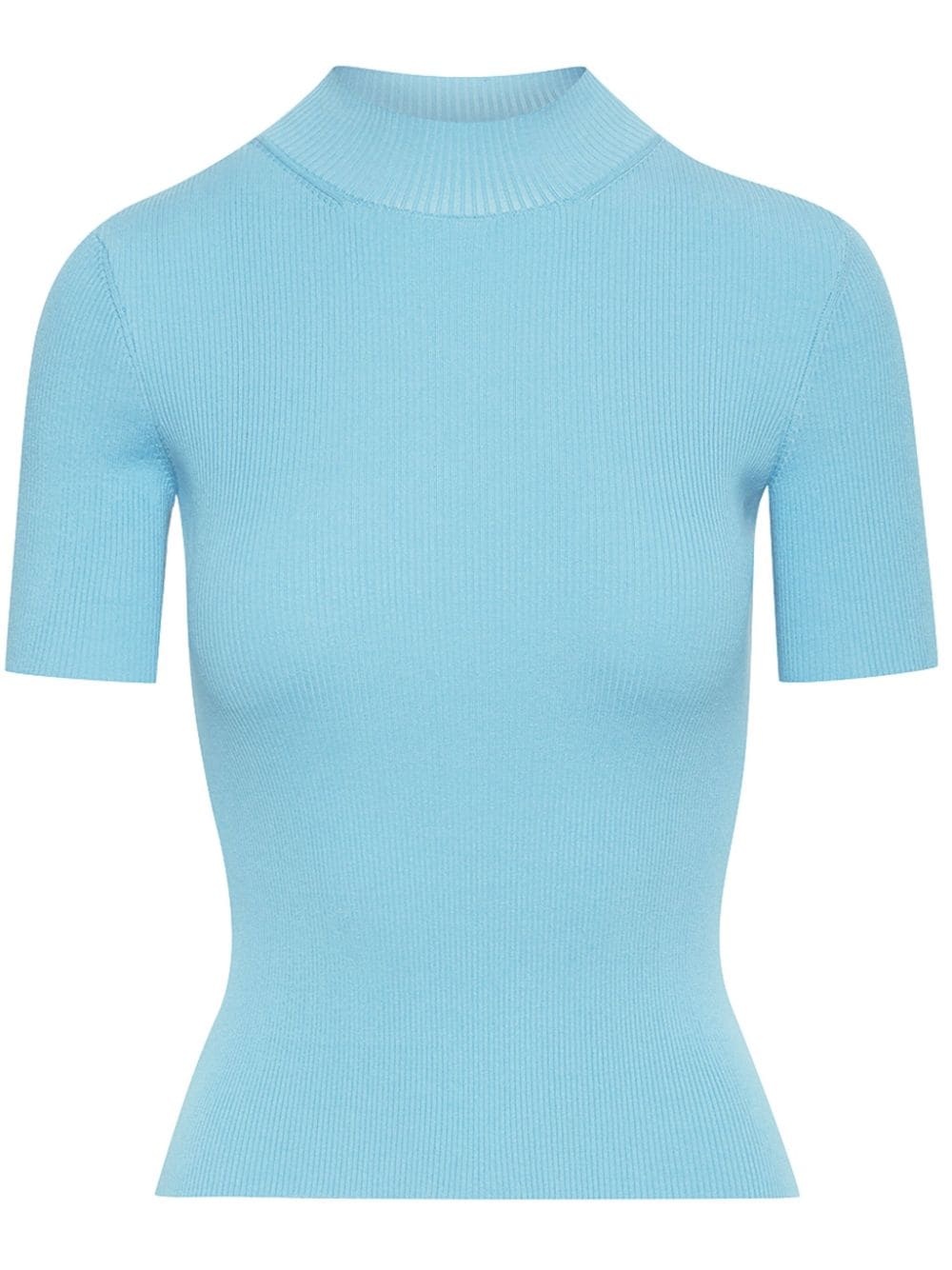 ribbed-knit silk-blend top Highlights - Pastel blue - Silk blend - Ribbed knit - Mock neck - Short sleeves - Straight hem - Model is 5'10.5" / 180 cm and wearing size xs Made in Italy Composition Silk 83%, Polyamide 15%, Elastane 2%