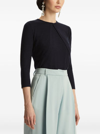 round-neck bolero Highlights - Navy blue - Wool blend - Three-quarter sleeves - Round neck Made in Italy Composition Wool 60%, Silk 30%, Cashmere 10% Washing instructions Dry Clean Only