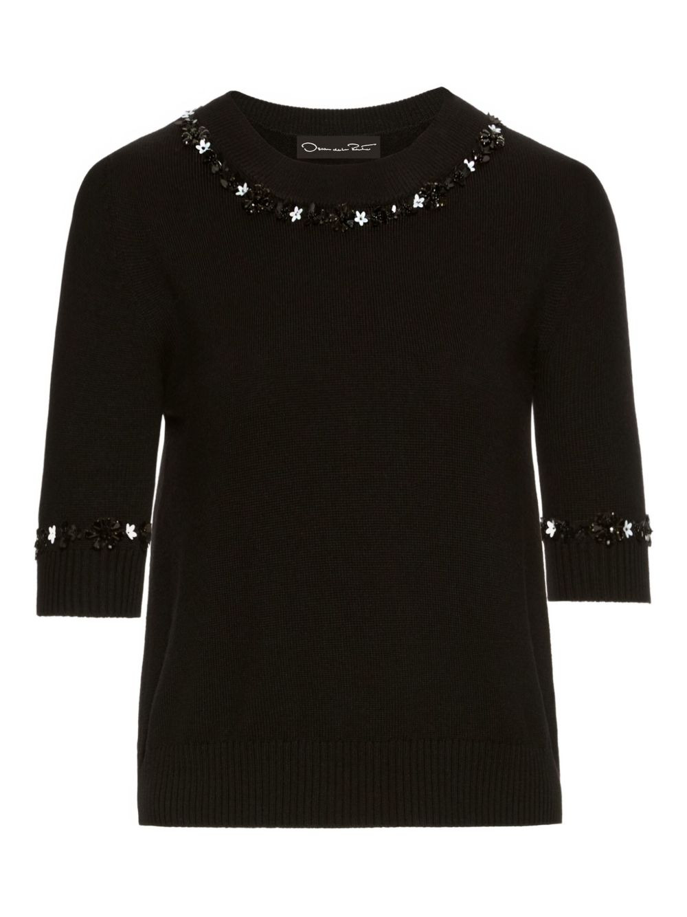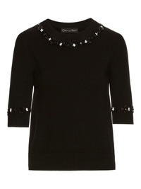 sequin-embellished wool T-shirt Highlights - Black - Wool - Sequin embellishment - Floret trim - Short sleeves - Round neck - Model is 5'10.5" / 180 cm and wearing size xs Made in Italy Composition Virgin Wool 100% Washing instructions Read Manufacturer Guidelines