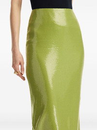 sequinned pencil skirt Highlights - Fern green - Concealed rear zip fastening - Rear slit - High-waisted - Model is 5'10.5" / 180 cm and wearing size 2 Made in Italy Composition Lining: Silk 85%, Elastane 15% Outer: Viscose 70%, Polyethylene 30%