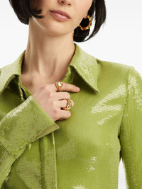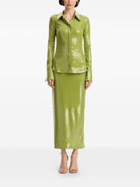 sequinned shirt Highlights - Fern green - Concealed front button fastening - Pointed flat collar - Long sleeves - High-cuffs - Model is 5'10.5" / 180 cm and wearing size 2 Made in Italy Composition Lining: Silk 85%, Elastane 15% Outer: Viscose 70%, Polyethylene 30%