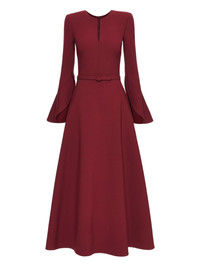 split-neck midi dress Highlights - Bordeaux red - Wool - Split neck - Bell sleeves - Waist belt - Concealed back zip fastening Made in Italy Composition Outer: Virgin Wool 94%, Elastane 5%, Polyamide 1% Lining: Wool 100% Washing instructions Read Manufacturer Guidelines