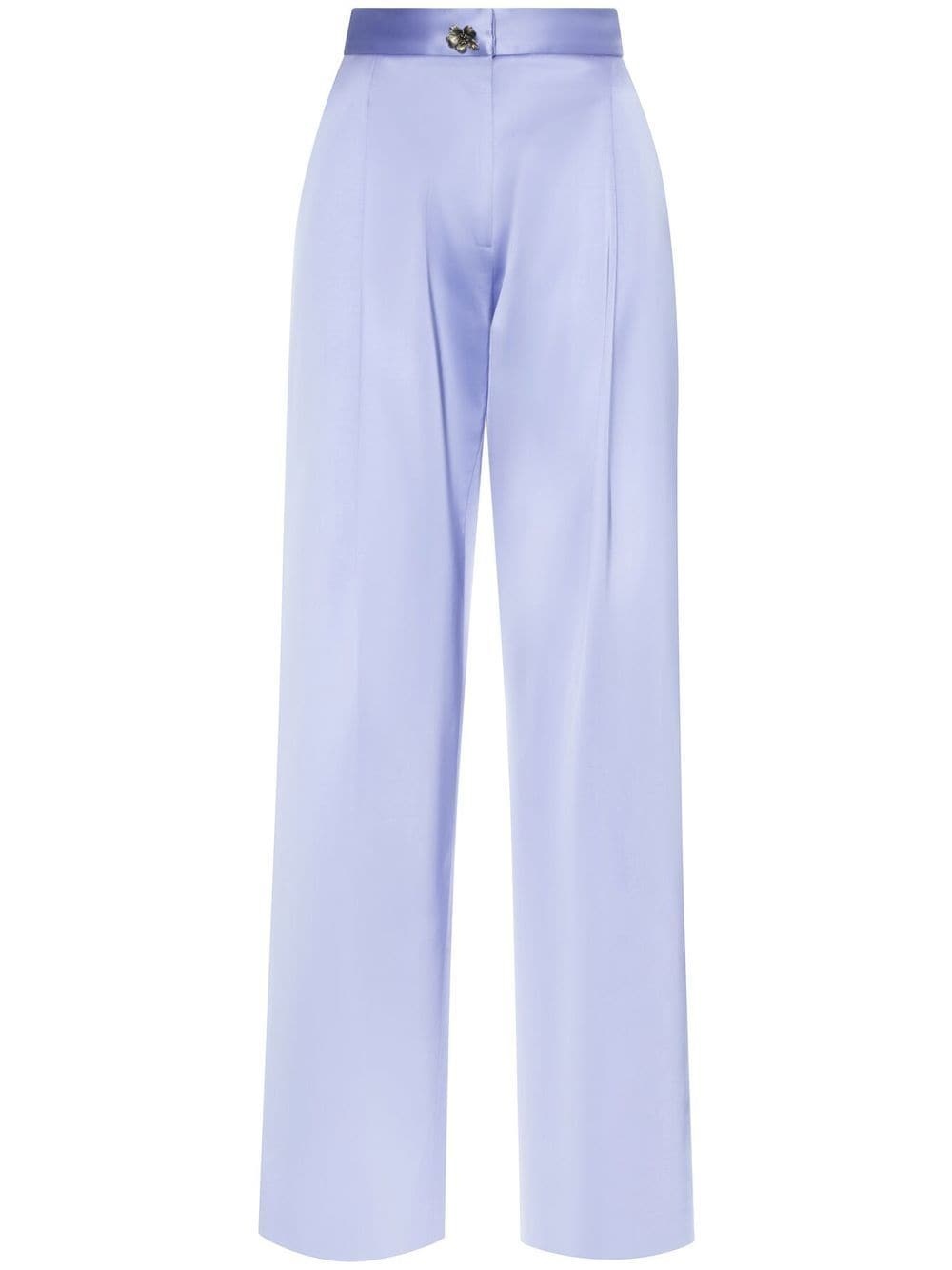straight-leg tailored trousers Highlights - Light purple - Tailored cut - Pressed crease - Front button and zip fastening - Two side slit pockets - Straight leg Made in Italy Composition Viscose 54%, Cotton 46%