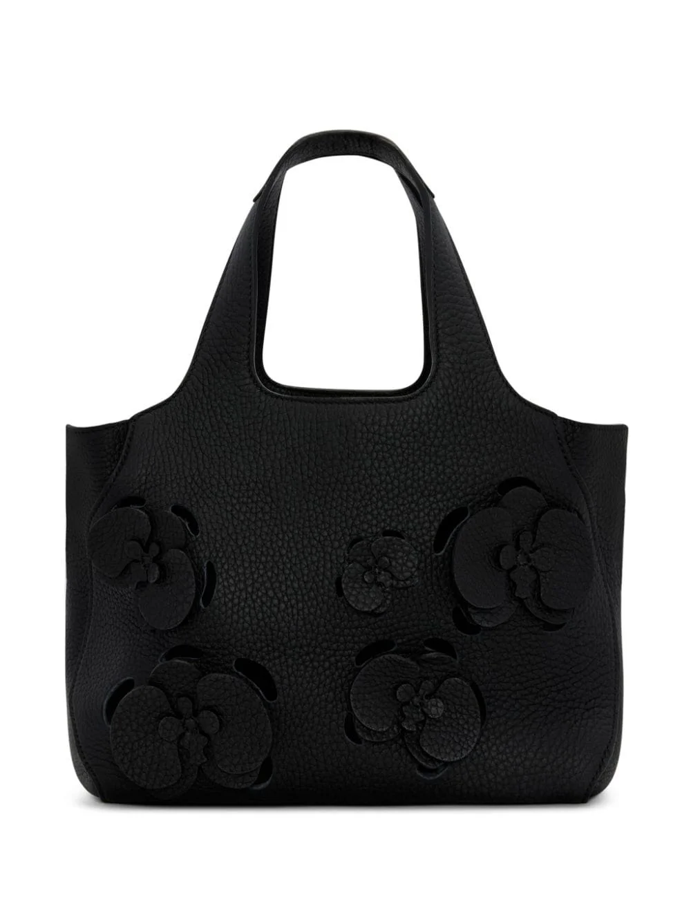 The Laser-Cut Mini Topaz tote bag Highlights - Black - Calf leather - Grained texture - Laser-cut detail - Floral applique - Gold-tone logo plaque - Logo stamp to the front - Two top handles - Main compartment - Unlined Made in Italy Composition Outer: Calf Leather 100% SIZE & FIT Measurement DEPTH 7.08 in(18 cm) HANDLE 4.92 in(12.5 cm) HEIGHT 3.34 in(8.5 cm) WIDTH 8.85 in(22.5 cm)